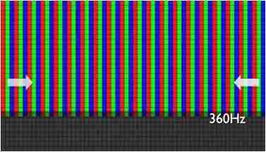 传统液晶驱动是从左到右单向进行,,在画面更新速度愈来越愈快的情况下,,位于驱动线路末端的右下角区域,,,,画素的闸极来不及在短时间内获得足够电压,,无法显示出正确的颜色资讯。。