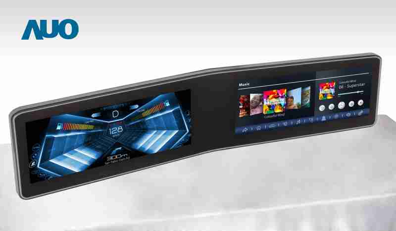 william威廉中文官网 V 型曲面驾驶舱显示器,,采全贴合拼接仪表板及中控台显示屏 |
